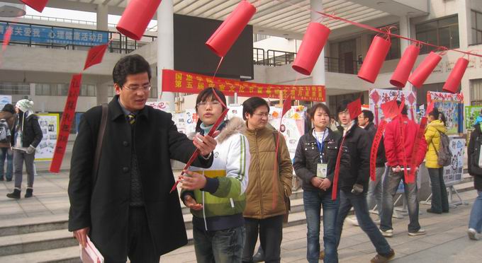 为充分展示学院第五届“讲基础文明 强自身素质 树国旅形象”基础文明建设月和09级新生在第五届“红旗飘飘,携手共筑我们的家”寝室文化节期间取得的成果,国旅学院团委、学生会于12月25日中午在花津校区大学生活动中心广场举行了 “红旗飘飘,携手共筑我们的家”第五届寝室文化节暨基础文明月成果展。