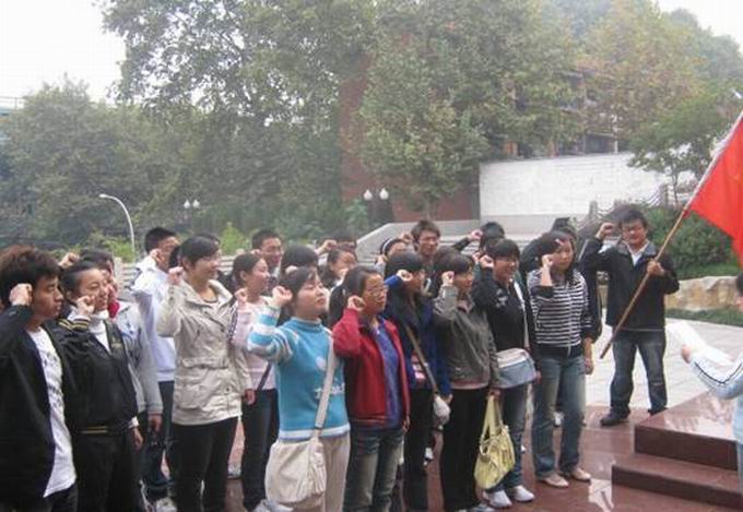 早晨8点,同学们在校门口整队集合,高举鲜红的旗帜,怀着崇敬的心情,向王稼祥纪念园出发。抵达目的地后,全体同学在王稼祥同志的英雄纪念碑前郑重宣誓,表达加入中国共产党的决心以及永远跟党走、全心全意为人民服务的强烈愿望。然后大家在园内讲解员的带领下,参观了王稼祥生平事迹展览室。纪念园里展示了关于王稼祥同志生前的各类图片、遗物、信件、文献和书籍以及他在中国革命各个历史时期的丰功伟绩和卓越贡献。
