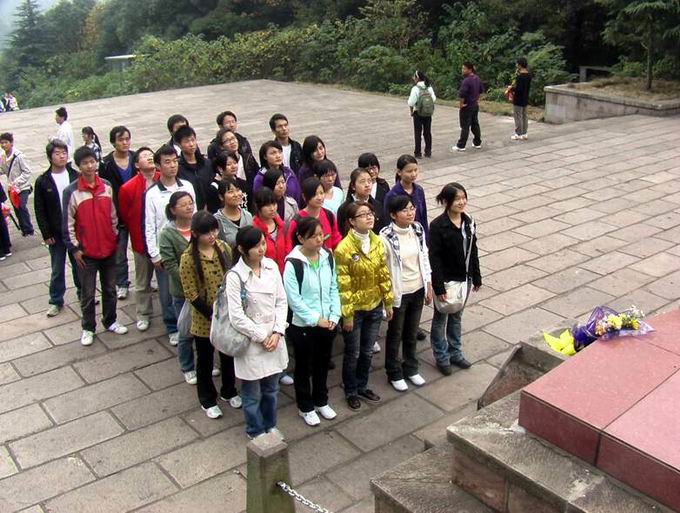 上午940分,大家满怀崇敬的心情来到了位于神山的烈士纪念碑前。经过小小的休整,学员们排好了队伍肃立在烈士纪念碑前。首先,由学员代表为纪念碑献上了鲜花,本期党校班长带领大家对烈士纪念碑深深的三鞠躬。然后班长带领大家学习了烈士纪念碑的建造历程和革命先烈的光荣事迹。