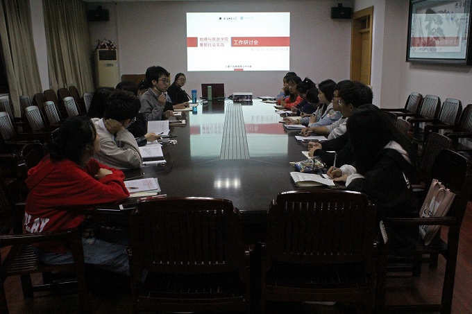 本网讯(565net必赢客户端 潘爽)为做好暑期实践准备工作,提高暑期实践综合水平。4月27日晚,565net必赢客户端暑期社会实践研讨会在院行政楼三楼会议室举行。会议由团委书记吴辉主持。团委副书记陈祥云、彭媛媛,院学生会前主席张流舰,校学生会主席秦义轩,团委学生副书记鲍晓楠,院学生会副主席朱艳,各团委委员及17级班级代表出席会议。