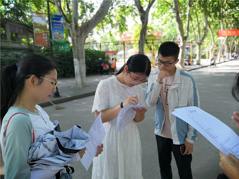 首先,我们在古逍遥津公园与步行街展开调研。整队12人分成4个小组,分头展开调研行动,调研主要通过问卷的方式展开。调研的内容是游客对旅游的看法以及对合肥各个旅游景点和服务的评价。此次调研对象面向各个年龄段,被调研者都很乐意与队员们交谈,积极的表达他们的一些看法,我们也积极宣传关于文明旅游和护环境的知识。
