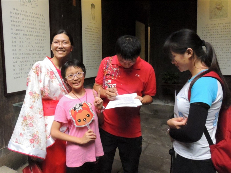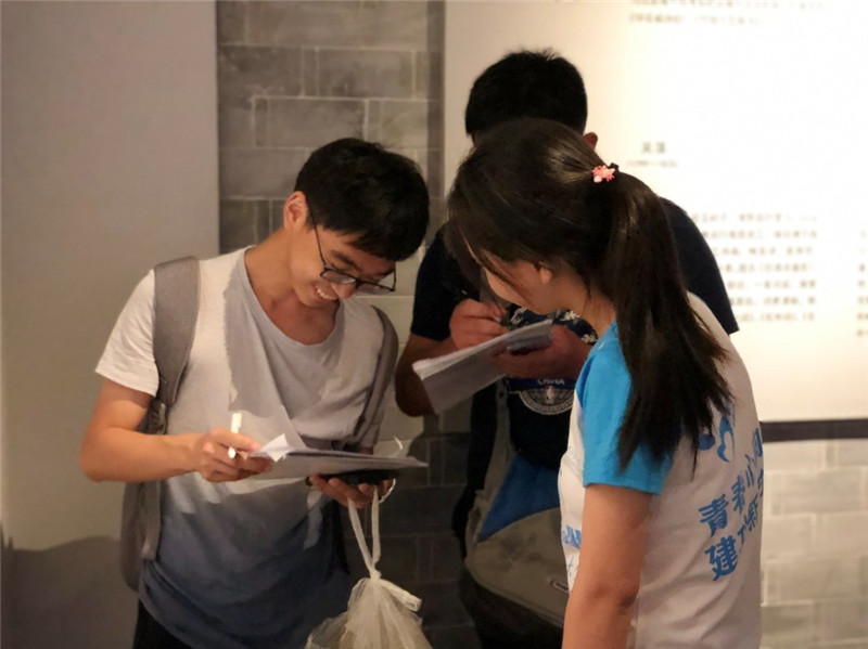 在调研过程中,队员们参观了馆内徽墨、书画、徽州三雕等展品,进一步了解了徽州文化。浓郁的文化气息也吸引了不少来自全国各地的游客,团队在此进行了文明旅游的宣传和问卷的发放。与前几日的游客组成不同,馆内游客多数为青少年,这也丰富了调查数据年龄层次的多样性。