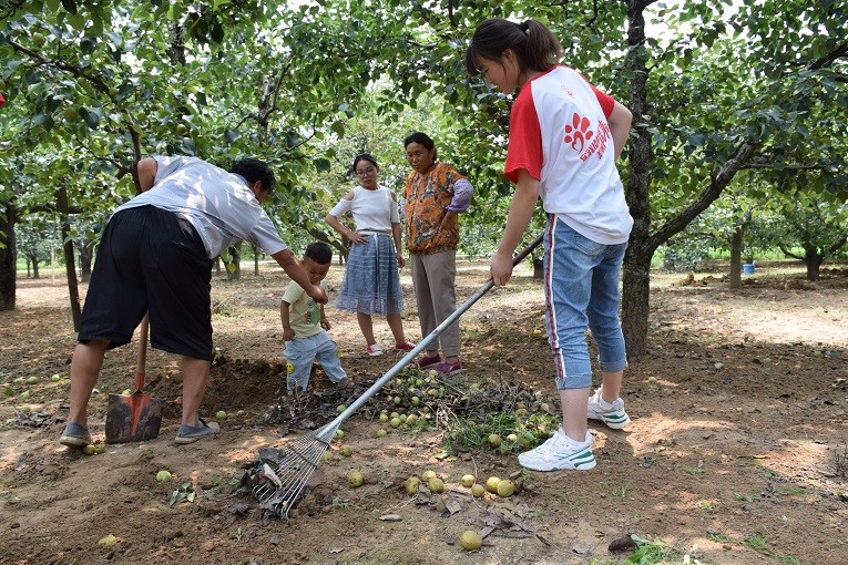 7月10日,团队成员再次来到臧氏奶奶家看望老人,帮助其干农活、宣传销售其梨果,在一定程度上减轻了老人的负担。臧奶奶对“城市田园交响曲”团队历年扶贫活动的感激之情难以言表,多次眼含泪水地说到:“多亏了你们这帮可爱的娃啊!我看到你们就像看到了自己的娃一样,太感谢你们了!”