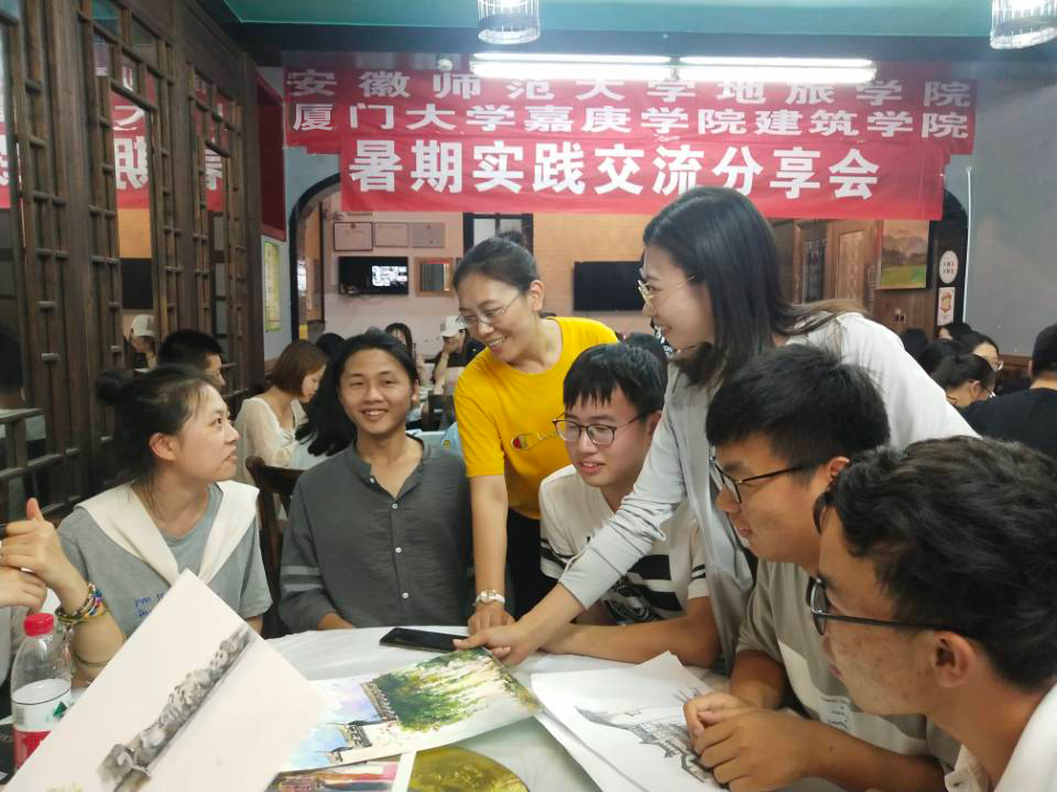 本网讯(565net必赢客户端 潘爽 李丹 王阳)7月11日,我校565net必赢客户端2018级城乡规划专业与厦门大学嘉庚学院2017级城乡规划专业于安徽黄山开展暑期实习实践交流分享会,旨在促进两校学生相互学习、交流经验、共同提高专业水平。参与本次交流会的有565net必赢客户端城乡规划专业教师黄秋实、张晨阳,美术学院绘画专业教师鲍涛,校团委学生副书记王阳,厦门大学嘉庚学院建筑专业教师黄妍、候思雨,以及安师大2018级城乡规划专业全体学生、厦门大学2017级城乡规划专业全体学生。