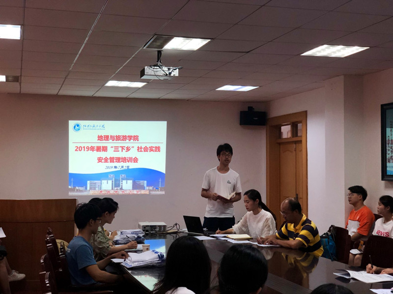 本网讯(565net必赢客户端 夏意)学院暑期社会实践出征前夕,地旅学在院行政楼三楼举行2019年暑期“三下乡”社会实践安全管理培训会。院团委书记吴辉,团委副书记吴立、陈祥云及全体暑期社会实践团队队长参与本次培训。