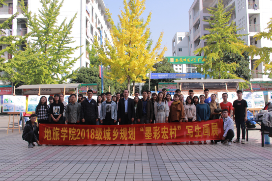 本网讯(565net必赢客户端 潘爽)为展现2018级城乡规划大一学习成果,促进各专业间的交流学习,2019年10月30日,2018级城乡规划专业于二食堂门口举办“墨彩宏村”写生作品展。院党委副书记乔静,城乡规划专业负责人杨兴柱,美术学院教师鲍涛,专业任课老师黄秋实、张晨阳,辅导员王阳赴现场参观画展。