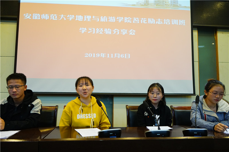 本网讯(565net必赢客户端 洪茹芊 张子豪)11月6日晚,565net必赢客户端在学院实验楼101报告厅举办苔花励志培训班学习经验分享会。本次交流会邀请四位优秀学生代表黄娜、储青青、帅林茹、王川与2019级全体家庭经济困难学生交流沟通。会议由2017级城乡规划专业、2019级地理科学(拔尖人才班)、2019级地理科学类专业辅导员齐小学主持。