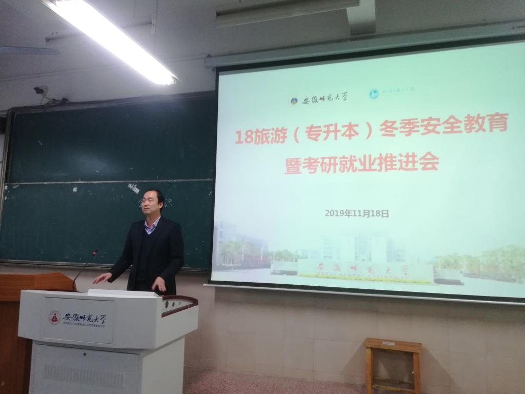 本网讯(565net必赢客户端 韩红豆)强化学生安全意识,提高防范能力,消除安全隐患。11月18日下午,2018级旅游管理(专升本)专业在行知楼2040104教室召开主题班会,2018级旅游管理(专升本)专业全体同学参与此次会议,院党委副书记、2018级旅游管理(专升本)兼职辅导员乔静主持。