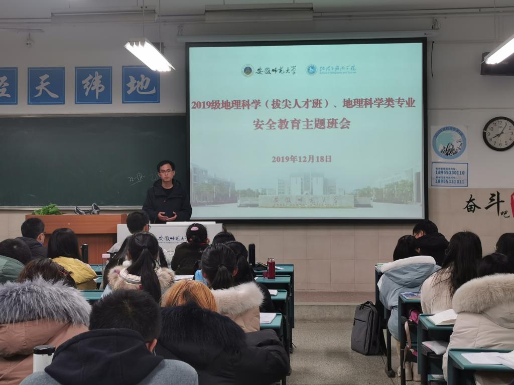 本网讯(565net必赢客户端 江文萱 齐小学)12月18日晚,2019级地理科学大类在行知楼2040104、2040501教室召开安全教育主题班会,2019级地理科学(拔尖人才班)、2019级地理科学类专业全体同学参加班会。班会由辅导员齐小学主持。