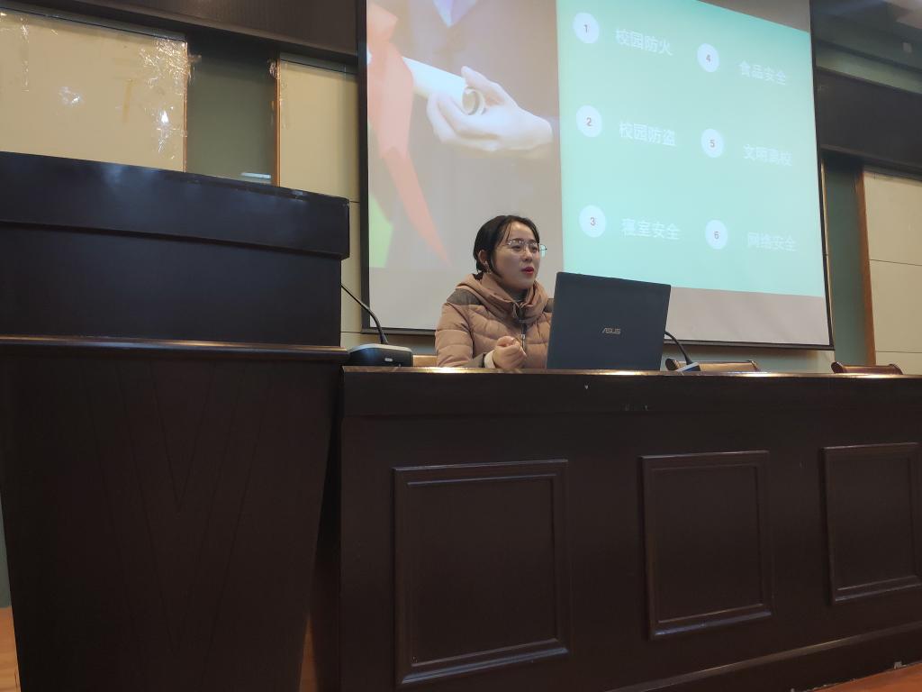 班会上,王阳围绕“冬季用电安全”主题,以实例强调了违规用电行为带来的安全隐患与违反校规校纪的严重后果。她提醒同学们留意生活中的安全问题,包括校园防火防盗、寝室安全、食品安全、网络安全等多个方面。同时,王阳号召同学们,在寒假即将到来之际,做到文明离校,做好寒假安全报备工作。
