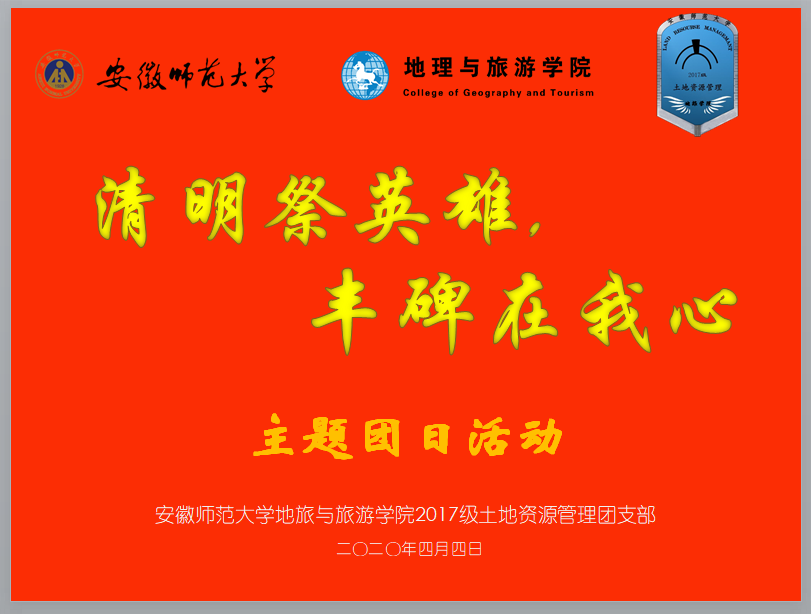 本网讯(565net必赢客户端 王健)为引导同学们清明节期间不扎堆聚集,通过健康文明方式表达对先人的缅怀、对英烈的敬意,进一步牢记英烈的丰功伟绩、传承英烈的伟大精神,4月4日下午,2017级土地资源管理专业通过网络平台开展“清明祭英烈,丰碑在我心”主题团日活动。主题团日活动由团支书卢雨佳主持,2017级土地资源管理全体团员与辅导员王美参与活动。
