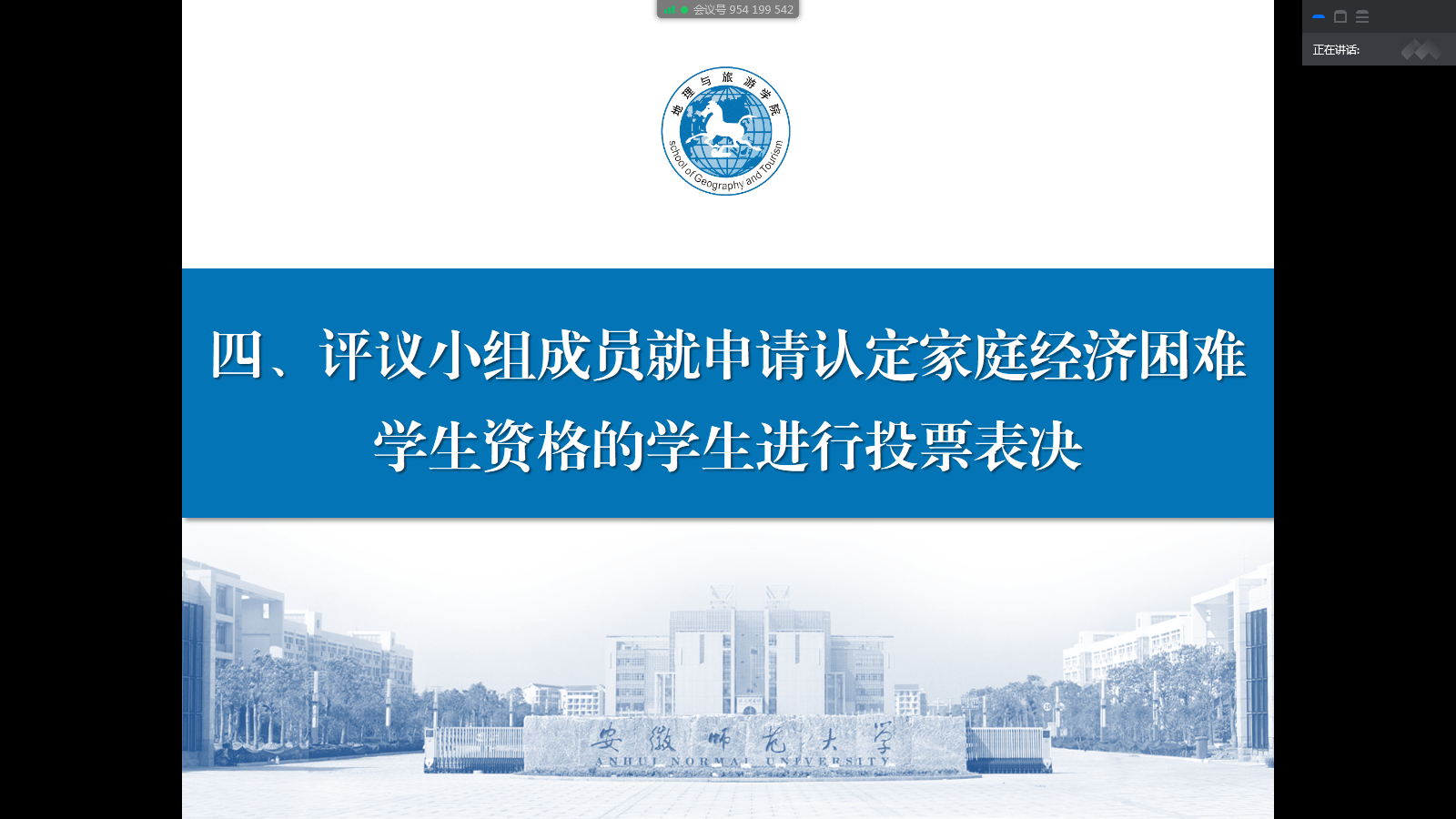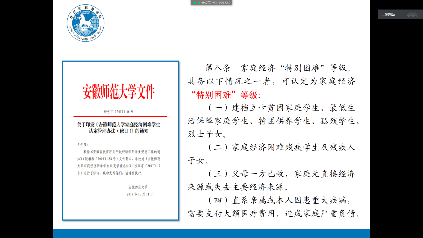 同时,在集中认定结束后,面对班级同学家庭突发变故、申请认定家庭经济困难学生资格,2019级地理科学(拔尖人才班)评议小组,在截止日期前临时召开家庭经济困难学生认定(第二批)评审推荐会,体现了对同学的关心关爱,展现了班级的凝聚力和战斗力。