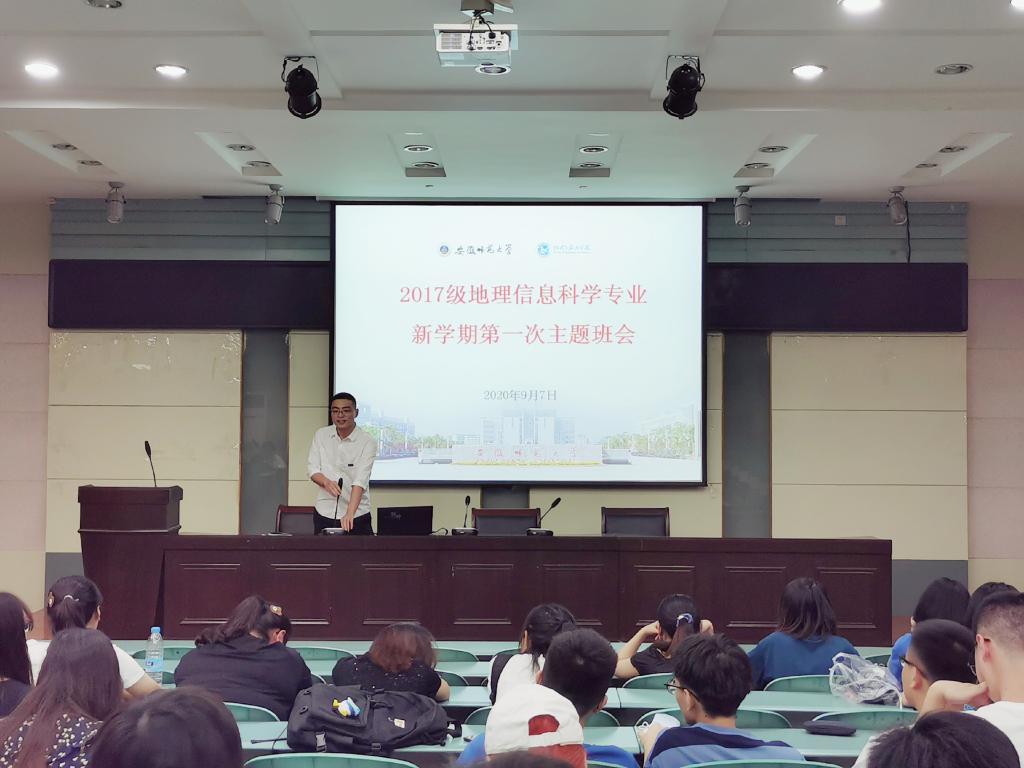 本网讯(565net必赢客户端 章莹莹)为迎接新学期的到来,9月7日下午,2017级地理信息科学专业于565net必赢客户端实验楼101报告厅召开了新学期第一次主题班会。班会由辅导员韩红豆主持,2017级地理信息科学专业全体同学参会。
