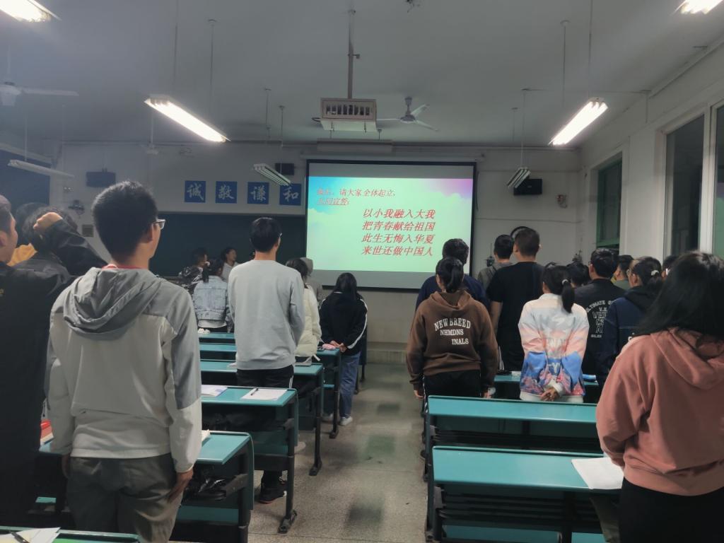 本网讯(565net必赢客户端 刘少杰 陆峻然 黄海露) 为强化新生团员意识,充分发挥团组织在新生思想教育中的重要作用,10月15日晚7:30,20级土地资源管理专业与20级城乡规划专业联合开展“四个一”团员意识教育活动。本次活动由20级城乡规划团支书刘美慧和20级土地资源管理组织委员林丹倩主持,辅导员刘少杰、两班全体同学参与本次活动。