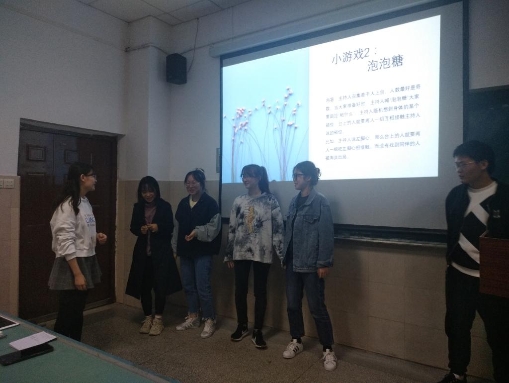 随后,心理委员吴净组织进行心理知识问答,并邀请同学上台参与心理游戏,考验了同学们的合作能力,拉近了同学间的距离,有利于班级同学加强交流。