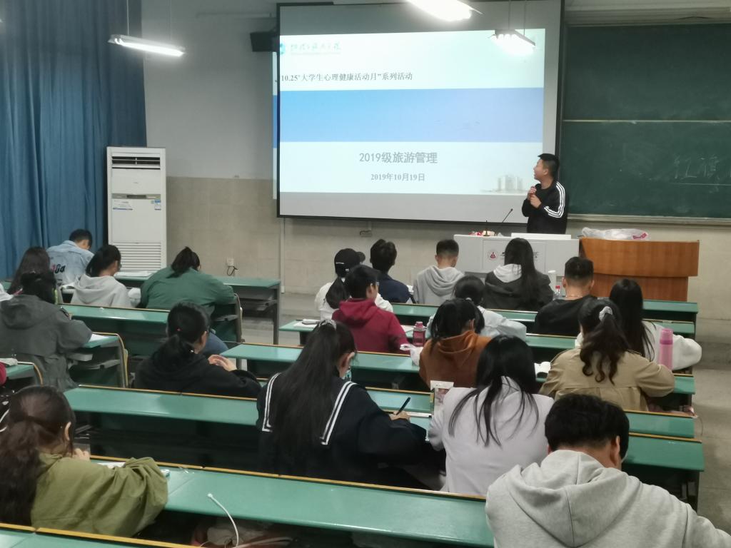 本网讯(2019级旅游管理 凡语馨)打开心灵的窗口,走出心理的孤岛。为了响应学校心理活动月号召,积极关注大学生心理健康,引导大学生建设健康心理,度过健康、丰富、多彩的大学生活,10月19日下午,565net必赢客户端2019级旅游管理专业在行知楼一号楼教室举行心理健康活动月心理主题班会。班会由心理健康委员董宇同学主持,全体同学到会。