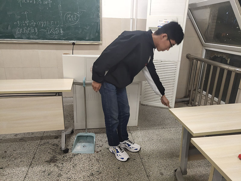 清扫期间,同学们保持着一丝不苟的工作态度,认真对待卫生区域的每一个角落,为下一次在教室中学习的同学创造了整洁卫生的学习环境。在清扫结束后,唐伟康表示此次活动既锻炼了自己的动手能力,且培养了同学的团队合作精神。同学们也认为自己在此次活动中通过奉献实现了自己的价值,受益匪浅。