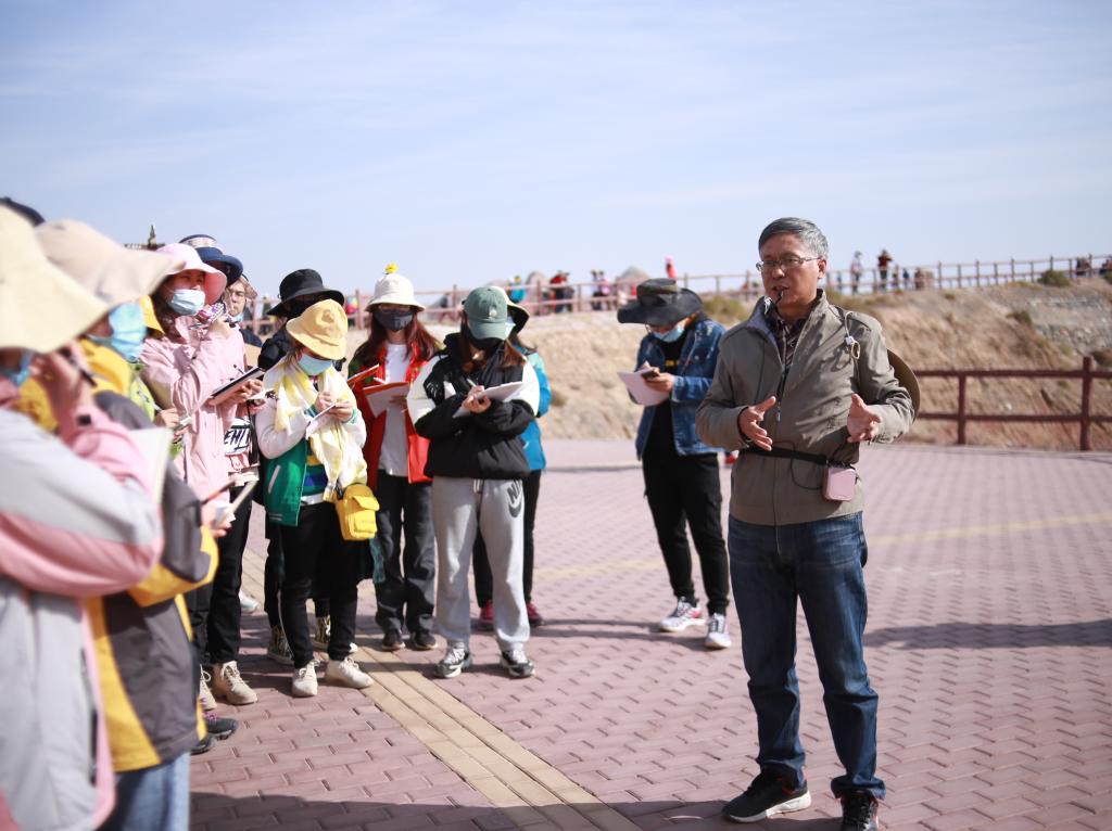 “学生们都切身感觉到西北的生态环境仍是十分脆弱的,意识到牢固树立‘绿水青山就是金山银山’理念的重要性。住宿时很多学生自觉当地缺水而舍不得用水,让我觉得这一趟西北没有白来,这里的真实生态环境就是给学生们最好的一堂课。处理好经济发展与生态保护之间的平衡问题,让生态发展与生态保护之间形成良性循环,是我们当前社会的重要课题。作为地理人,更要坚定不移践行绿色发展理念,肩负起生态文明建设的时代责任。我很高兴同学们此行不仅有所学、有所获,更有所思、有所想。”程先富总结道。