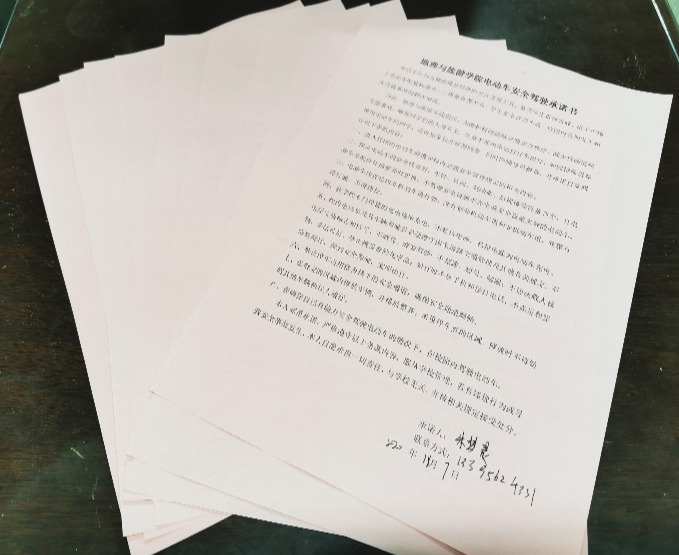 伴随着冬季的到来,交通事故也相应进入高发期。学院为保障学生安全,维护校园平安,在线上建构电动车管理体系,收集学生持有电动车的相关信息并归纳整理,同时在线下也请相关同学签署《565net必赢客户端电动车安全驾驶承诺书》,确保其自觉遵守交通规则。