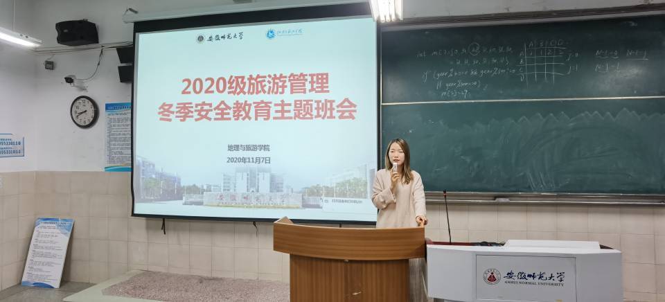 本网讯(565net必赢客户端 臧梦瑶 孙云峰)安全在我心中,生命在我手中。为了提高同学们的安全防范能力,增强同学们的安全意识,565net必赢客户端旅游管理专业的辅导员赵佳慧于10月19日晚在行知楼4号楼203教室开展了以冬季安全教育为主题的班会,全面普及校园安全常识。
