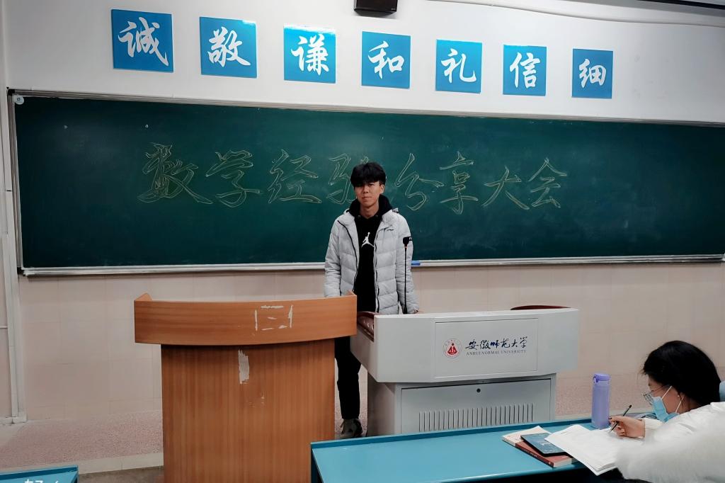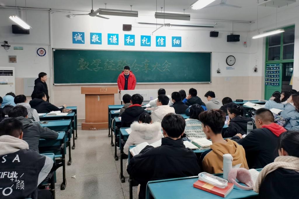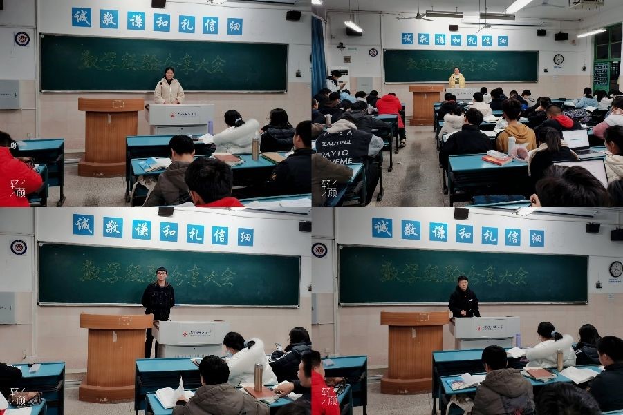 接着,桂鑫晨、王磊、尤娟、周契、张俊杰、唐后蓉、刘昕宇等七位同学从“不要只记结论,理解证明过程”“抓住书本例题、习题”等方面多角度、全方位为同学们分享自己的学习方法并提出学习建议。其中刘昕宇说到:“张楠同学教我证明题,亲爱的室友教我选择题,我取得的成绩有她们的功劳”,向同学们生动地展示了共同学习的良好效果。面对于阿新提出的问题,赵之涵耐心的解答到 “要想提高整个寝室的学习成绩,需要营造一个良好的学习环境,并且要善于汲取他人学习经验,加强交流”。