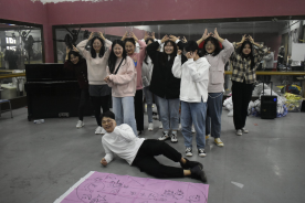 活动最后一项,团小组才艺比拼。每个团小组出一个才艺节目,依次表演,结束后每一组选出最爱的节目,得票最多的团小组获胜。经过十五分钟的排演和准备,每一个团小组都展示了精彩绝伦的表演,同学们自发打开手机闪光灯为他们挥舞加油。最终,团小组第六组以一票之差取得胜利,获得了零食大礼包。趣味运动会及团建活动接近尾声,辅导员徐倩老师组织同学们席地而坐并总结了这次活动,表达了对同学们之后学习生活的关心和对班级活动的支持。同学们高举班旗一起合影,记录下美好的一刻。活动在掌声中圆满结束。