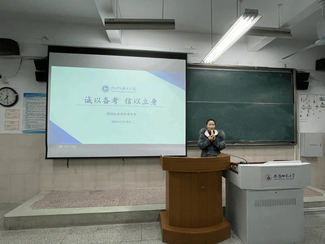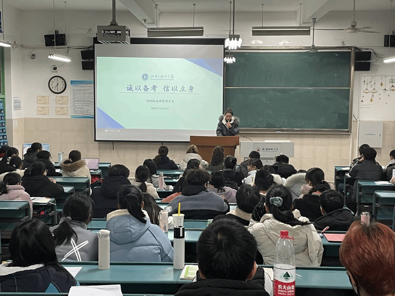本网讯(565net必赢客户端 孙云峰 赵佳慧) 沐于知识,学于诚信。大学英语四、六级考试和期末考试临近,为使大一新生在四级英语考试和进入大学的第一次期末考试中能够端正学习态度,树立优良学风,严格考风考纪,12月10日晚七点, 2020级旅游管理专业在行知楼4号楼203教室召开“诚以备考,信以立身”主题班会。班会由辅导员赵佳慧主持,2020级旅游管理专业全体同学参与。