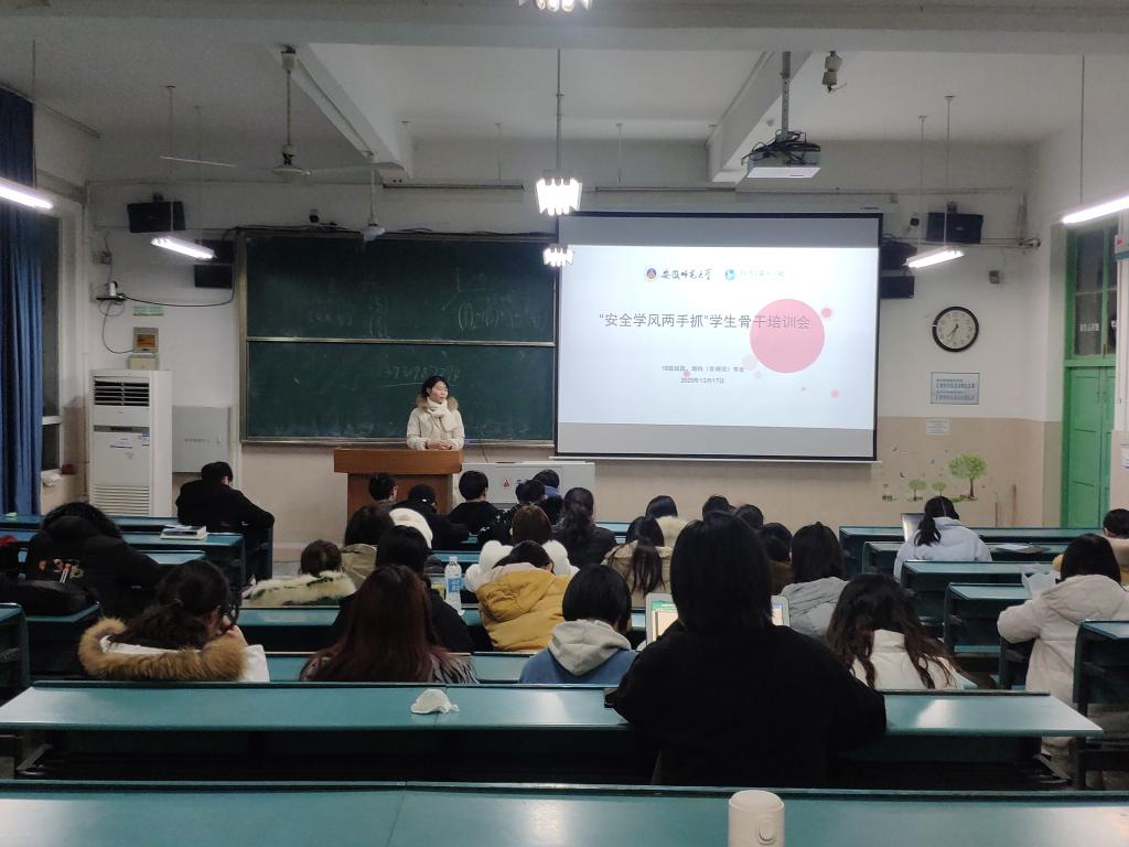 本网讯(565net必赢客户端 潘爽 张慧)为增强安全意识、加强学风建设,2020年12月17日晚,辅导员张慧主持召开了“安全学风两手抓”学生骨干培训会。2018级城乡规划、2018级地理科学(非师范)专业全体班委、寝室长及党员等学生骨干出席会议。