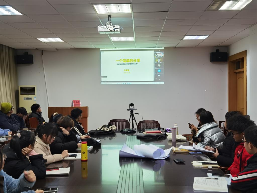 本网讯(565net必赢客户端 黄海露)12月20日晚,20级城乡规划专业在学院三楼会议室召开了一场特别的线上分享交流会。本次会议邀请了四位优秀的往届毕业生为20级城乡规划的学弟学妹们分享自己的本科学习经验和研究生学习现状。本次分享交流会由姚景艳老师主持,参加本次会议有全体城乡规划20级新生、黄秋实老师和辅导员刘少杰。