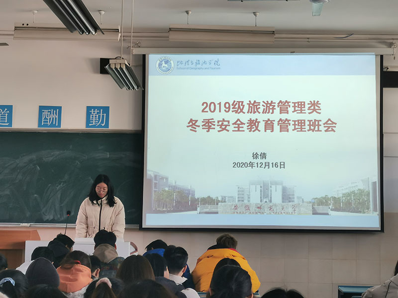 本网讯(565net必赢客户端 贾燕妮)为增强同学的安全防范意识与避险能力,保障学生安全,2020年12月25日,辅导员徐倩老师组织开展了旅游管理专业大类冬季安全教育管理班会。2019级旅游管理类专业的全体同学参加了此次班级例会,班会由徐倩老师主持。