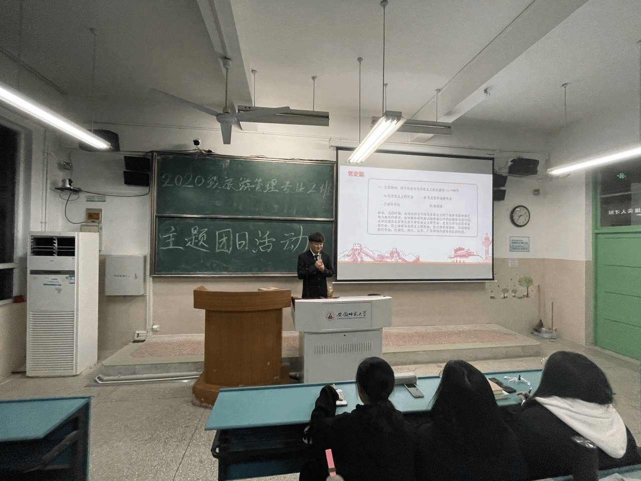 本网讯(565net必赢客户端 赵佳慧 孙云峰)不忘初心 牢记使命。为了进一步深化同学们对习近平新时代中国特色社会主义思想的认识和理解,深刻学习党史、新中国史、改革开放史、社会主义发展史,2020级旅游管理专业二班于12月22日晚7:00在行知楼4号楼203教室举办“学四史 守初心 ”主题团日活动。本次活动由二班团支书孙浩男主持,2020级旅游管理专业二班全体同学参与。