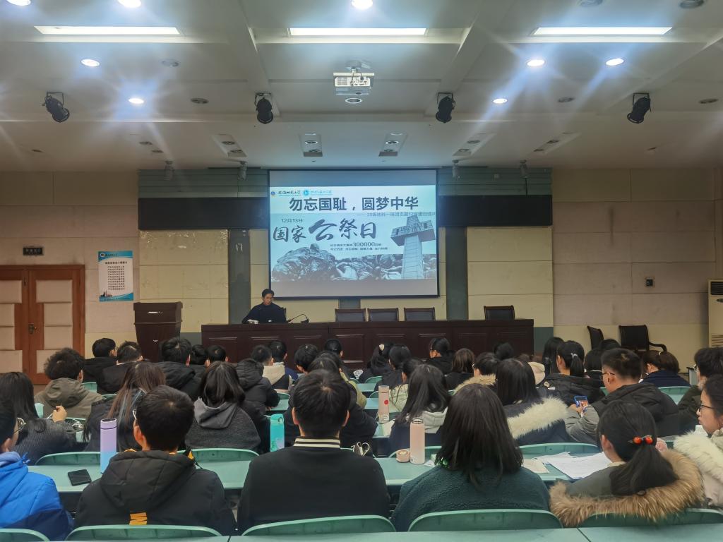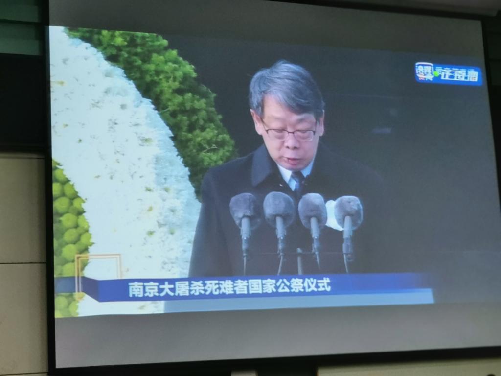 最后,同学们现场观看了2020年12月13日举行的国家公祭仪式,学习中央领导在国家公祭仪式上的重要讲话精神。中共中央政治局委员、中组部部长陈希指出,历史的苦难不能忘记,前进的脚步永不停息。在中国共产党的坚强领导下,今日的中国,比历史上任何时期都更接近实现中华民族伟大复兴的宏伟目标,困扰中华民族几千年的绝对贫困问题历史性得到解决,全面建成小康社会胜利在望,全面建设社会主义现代化国家新征程即将开启,这是我们对所有牺牲先烈和死难同胞的最好告慰。站在“两个一百年”奋斗目标历史交汇点上,我们将更加紧密地团结在以习近平同志为核心的党中央周围,以一往无前的奋斗姿态、风雨无阻的精神状态,积极践行新发展理念,着力构建新发展格局,奋力推动高质量发展,在全面建设社会主义现代化国家新征程上创造新的历史伟业!