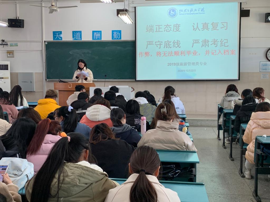 本网讯(565net必赢客户端 杨睿)期末临近,为营造良好的考试氛围,净化考试环境。近期,2019级旅游管理专业大类召开了诚信考试教育主题班会。会议由辅导员徐倩老师主持。2019级旅游管理、酒店管理所有同学参与其中。