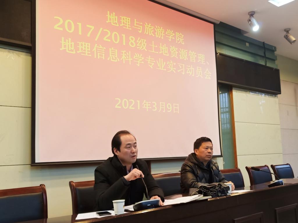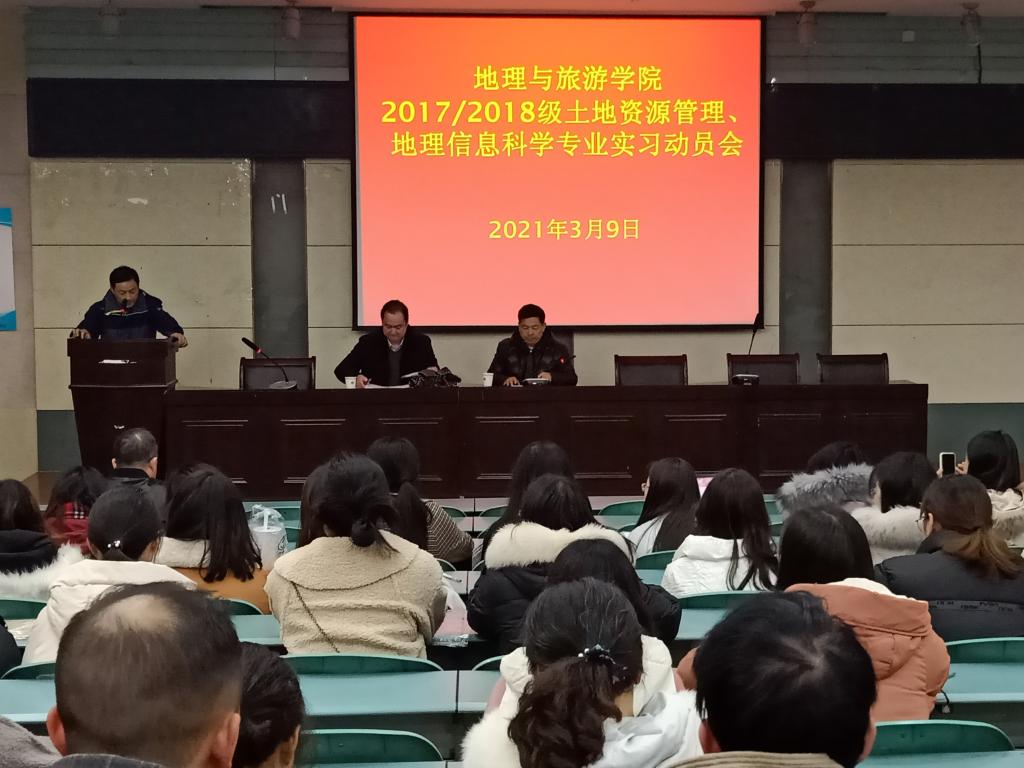 本网讯(565net必赢客户端 孙雯杰 彭媛媛)专业实习在即,为帮助同学们了解专业实习意义,提醒实习注意事项,加强安全意识,2017、2018级土地资源管理、地理信息科学专业于2021年3月9日下午4:30在565net必赢客户端实验楼101召开专业实习动员会。院长曹卫东、院党委副书记乔静,学院专业老师汪左、吴庆双、张运、徐培培、贾蔡、梁栋栋、费罗成、鲁成树、肖瑛、李陈、王满银、罗遥、吴九兴、余健、程久苗、徐玉婷,2018级地理信息科学辅导员彭媛媛参加会议,会议由张运主持,2017、2018级土地资源管理、地理信息科学专业全体同学参与。