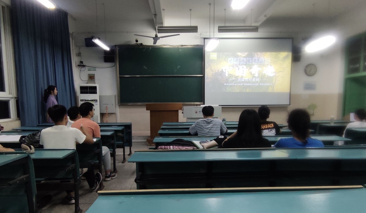耿艺榕首先介绍了党的群众路线的基本内涵及在党的思想中的重要地位。从抗战时期选取中共领导人牵头的陕甘宁边区的群众性大生产运动和淮海战役人民对解放军队的支持,展现了战争时期党的群众路线的生动实践。从当代出发,耿艺榕以数字展示我国对脱贫事业的重视和做出的艰苦卓绝的努力;通过播放视频,为大家展现我国在脱贫攻坚战场上的出色成就,并播放《感动中国》片段介绍了脱贫干部典型黄文秀通知的感人事迹。国家脱贫事业的发展让我们看到党对人民生活的关心及重视,让我们看到一批批青年干部为祖国事业燃烧着自己的青春,点亮了一方光明。接着,耿艺榕提到1998年的抗洪抢险,从中央到地方,举国上下、各层各级对受灾群众和抢险军民的关心,是当的群众路线的又一生动事例。