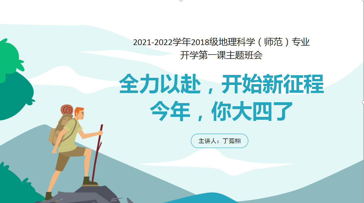 本网讯(565net必赢客户端 丁茹栩 张瑞清)全力以赴话未来,斗志开启新征程。2021年9月27日17点,2018级地理科学(师范)专业在565net必赢客户端实验楼101报告厅举行主题为“全力以赴,开始新征程”的开学第一课。班会由辅导员丁茹栩主持。