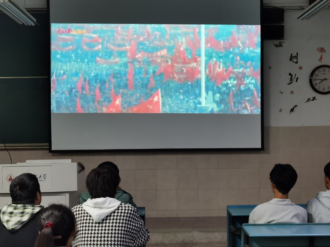 姚兰结合PPT向同学们介绍了中国共产党百年奋斗历程和伟大建党精神,并以“中国共产党为什么能”为切入点展开此次主题团日交流讨论,并号召新时代的大学生应该继承和弘扬党的精神,坚持真理、坚守理想,践行初心、担当使命,不怕牺牲、英勇斗争,对党忠诚、不负人民。最后姚兰通过一段视频带领同学们领略了繁荣昌盛的中国,同学们反响热烈,并积极分享感悟。