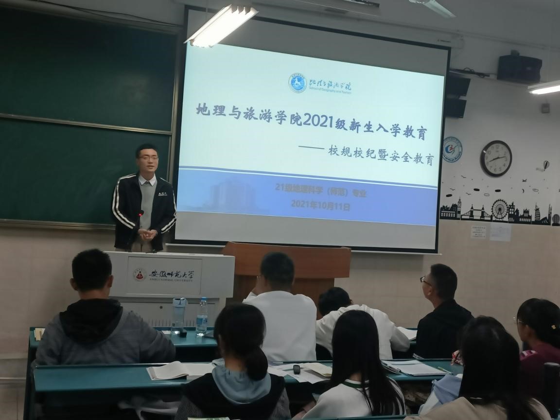 本网讯(565net必赢客户端 韩红豆 王彩安)为加强学生日常管理,切实增强学生的安全防范意识和避险能力,10月11日晚,2021级地理科学(师范)专业在行知楼2040204召开新生入学安全教育班会。会议由辅导员韩红豆主持,21级地理科学(师范)全体同学参加。