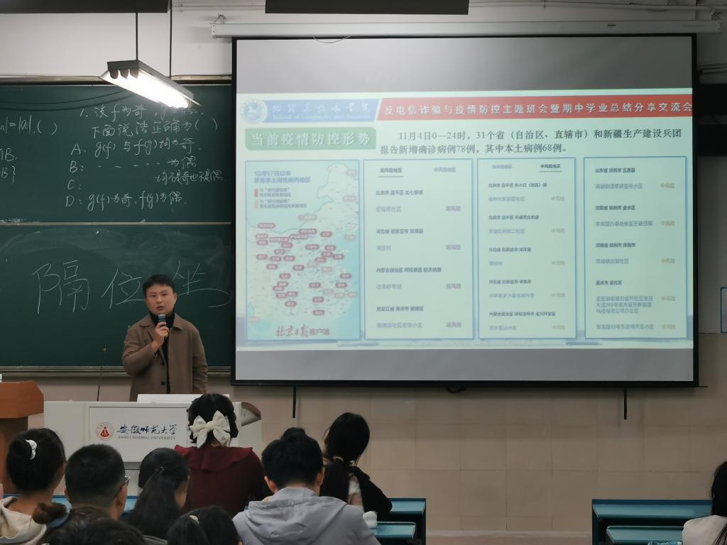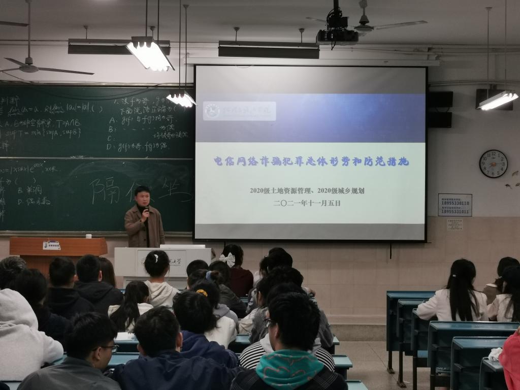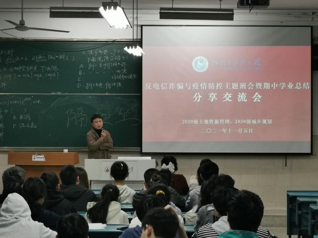 本网讯(565net必赢客户端 刘少杰 张楠)为进一步加强学生的安全教育管理,提高学生的防诈骗意识,营造平安和谐稳定的校园环境,11月5日晚,20级城乡规划和20级土地资源管理专业召开“反电信诈骗与疫情防控”主题班会。此次会议由辅导员刘少杰主持,20级城乡规划和20级土地资源管理专业全体学生参与。