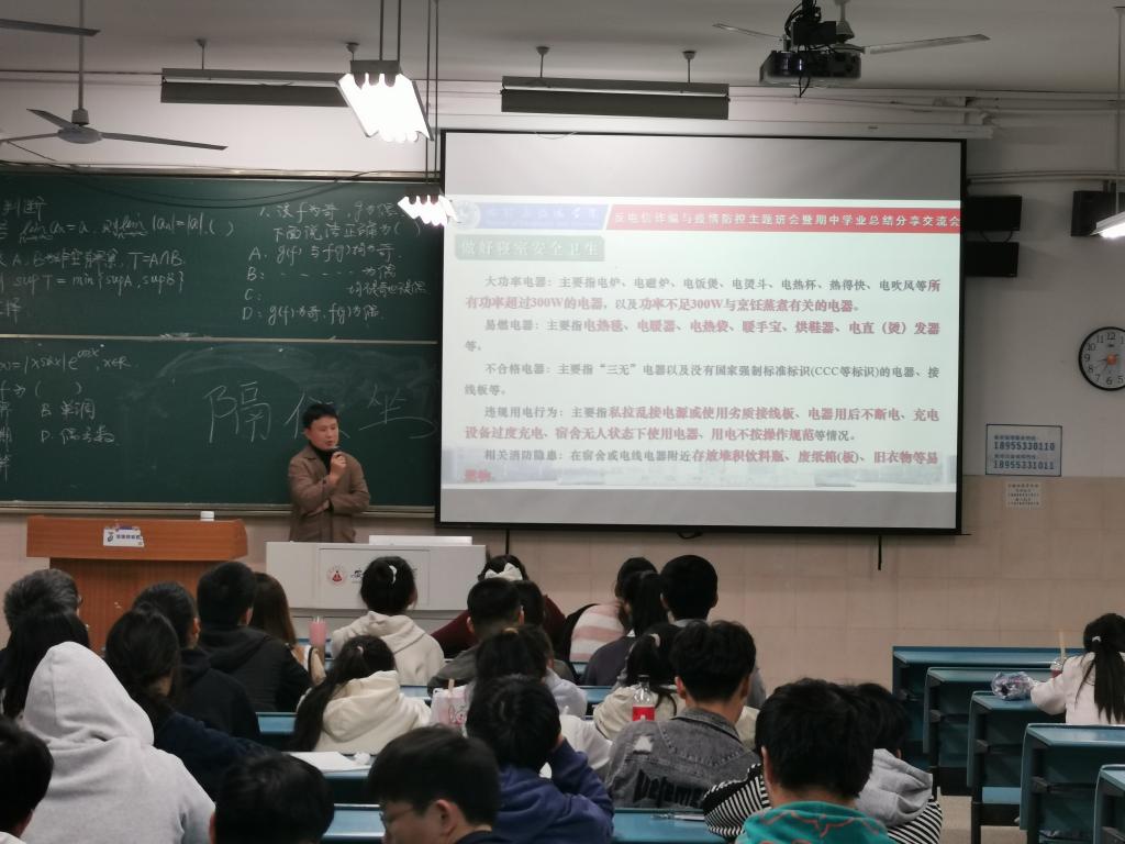接着,刘少杰就“确保寝室安全卫生”、“当前疫情防控形势”、“及时做好疫苗接种”以及“压实疫情防控责任”等方面给大家做好全面提醒同时提出要求,要求同学们严格按照学校规定不得在宿舍使用违规电器;认真做好日常寝室卫生和教室卫生清洁工作;积极做好疫苗“加强针”接种的工作准备;严格落实师生晨、午、晚检制度,按照“一人不漏、一次不少”原则,实行“包保责任制”,寝室长包寝室,班级主要干部包班级。最后,刘少杰强调:每位同学们都要认真学习此次会议内容,不断提高自己的防诈骗能力,严格遵守校规校纪,各个班级要不断加强日常管理,严守安全底线,确保每个同学在安全稳定的环境中学习和生活。