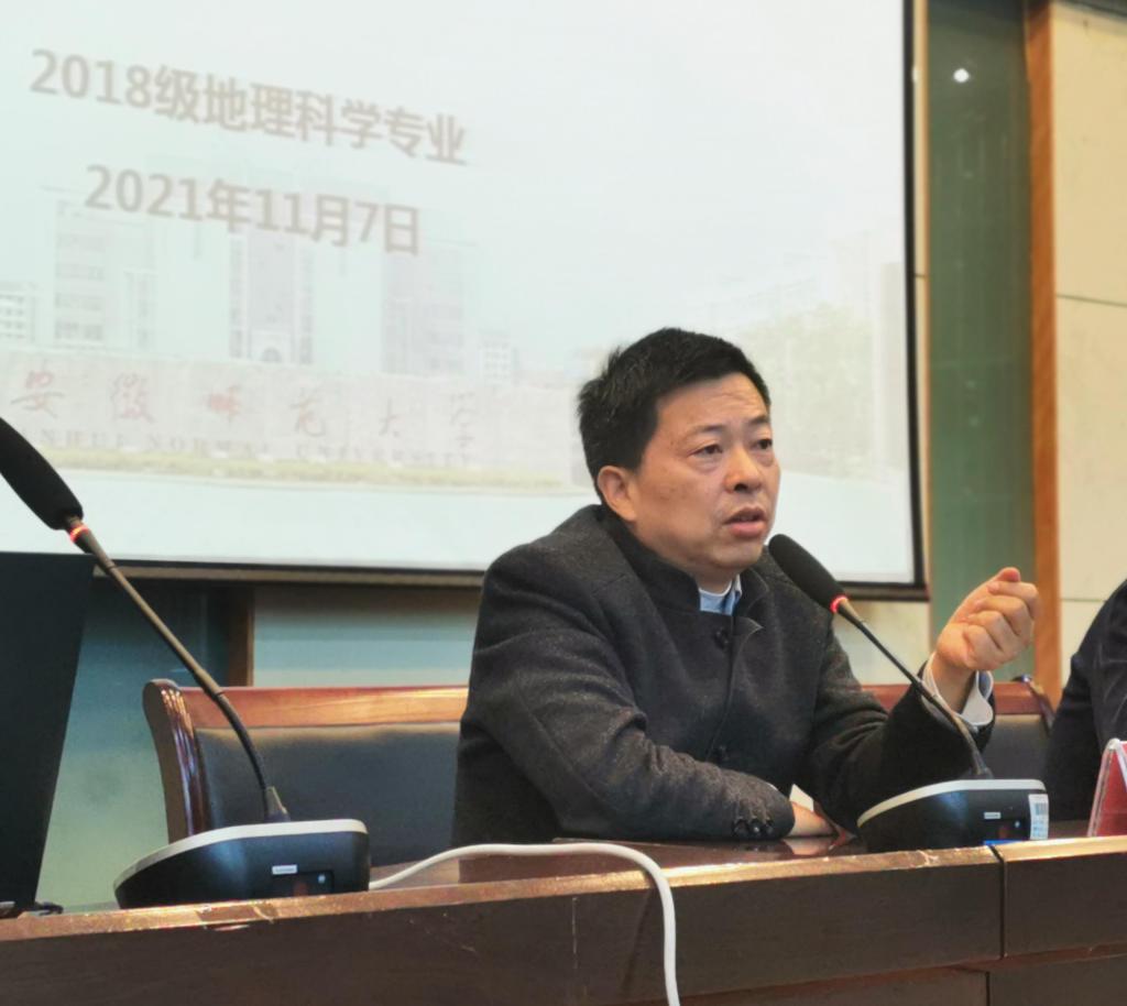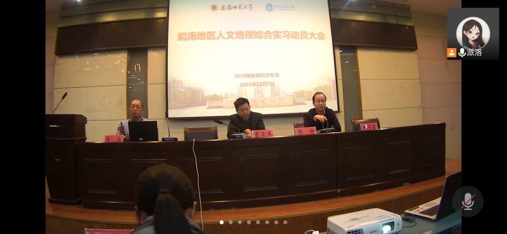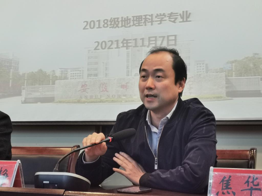 本网讯(565net必赢客户端 文/张慧 李娜 图/丁茹栩 尹仟仟)11月7日晚,565net必赢客户端在学院实验楼101报告厅举行皖南地区人文地理综合实习动员大会暨皖南实习专业讲座“线上+线下”会议。565net必赢客户端副院长曹卫东,党委副书记乔静,实习指导教授焦华富、吴立、赵春雨、方叶兵及辅导员丁茹栩、张慧出席会议。会议严格遵守疫情防控规定,采取“线上+线下”的形式,2018级地理科学专业班委、寝室长参与线下会议,其余学生参与线上腾讯会议。会议由带队老师吴立主持。