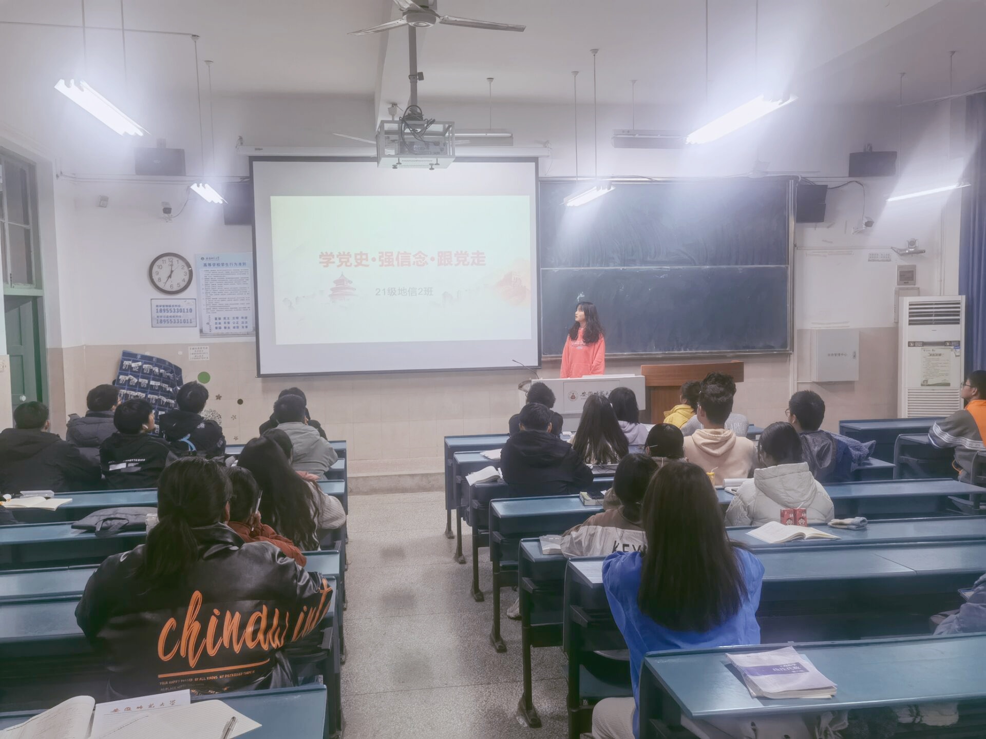 本网讯(565net必赢客户端 胡珊珊)2021年11月24日晚,2021级地理信息科学专业2班于行知楼4号楼303室开展主题团日活动,会议围绕“学党史,强信念,跟党走”的主题展开,由团支书杨周洲主持。