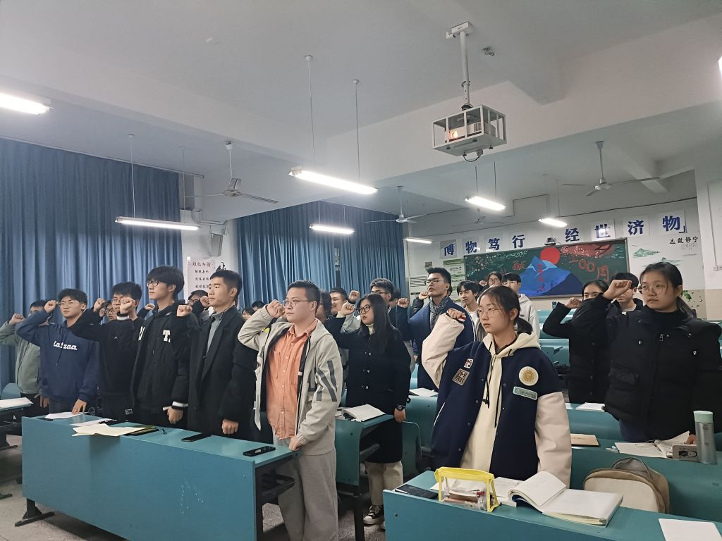 最后全体团员起立重温入团誓词举起右拳2021级地理科学拔尖人才班第一次团支部大会在着激昂的誓词中落下帷幕。