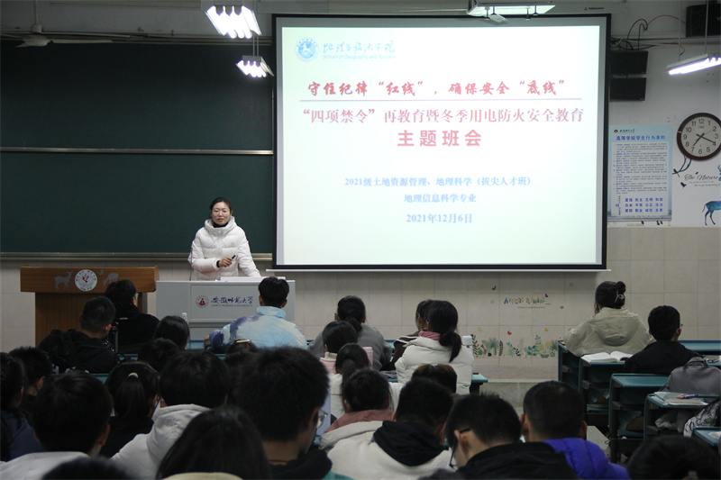2021级地信、土地、地拔专业开展“四项禁令”再教育暨冬季用电防火安全教育主题班会