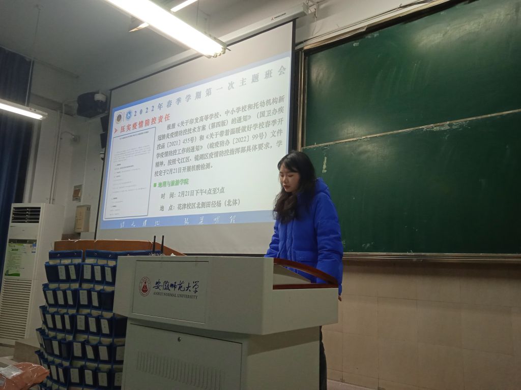 会议伊始,张慧提醒同学们做好第八学期学业规划:关注重缓考注意事项、及时完成选课、积极参加素拓活动、尽早写好毕业论文。张慧通过讲解弋江区诈骗案例及冰墩墩诈骗事件,进一步提醒同学们在下载安装“国家反诈中心”APP的同时积极使用软件功能,提高财产安全、个人信息安全防范意识,同时,她强调了疫情防控以及交通安全、食品安全等一系列安全问题的防范措施。此外,张慧还提醒同学们落实复课证明查验制度、“晨午晚检”制度、“健康打卡”、“晚点名”、请销假制度等等。最后,张慧带领同学们学习“四个严禁”等校规校纪,并以案例警示,提醒同学们不做违反学生手册及寝室文明公约的行为。