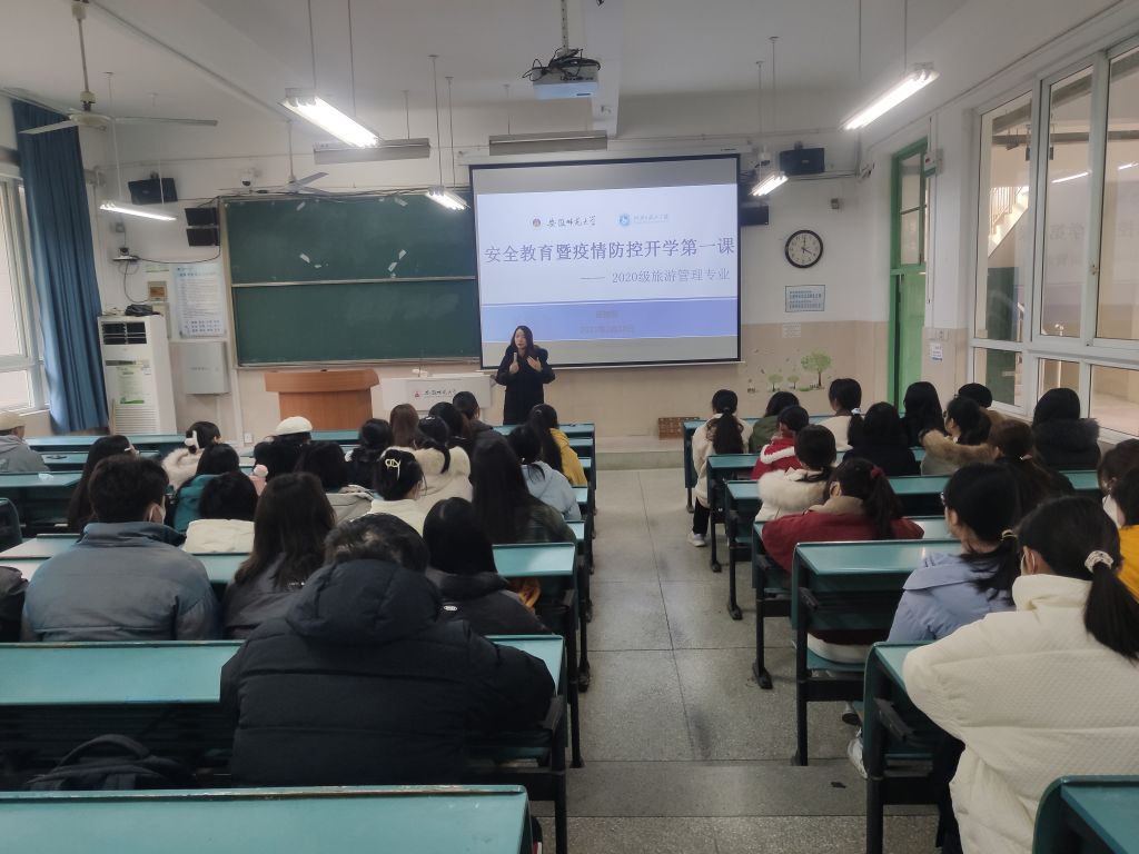 本网讯(565net必赢客户端 舒玉茹)新学期,新气象,新挑战。为激发学生昂扬斗志,帮助学生确立职业规划意识以及在疫情常态化发展下,提高安全意识,尽快适应新学期的校园生活。2022年2月19日晚,2020级旅游管理专业召开安全教育暨疫情防控“开学第一课”主题班会。班会由辅导员赵佳慧主持,2020级旅游管理全体同学参加。