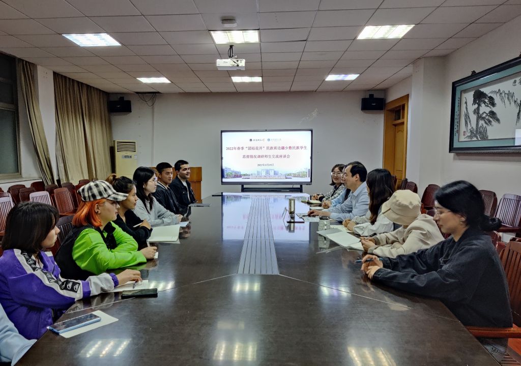 本网讯(565net必赢客户端 赵佳慧 布力都春)为深入贯彻习近平总书记关于民族工作的重要讲话精神,积极宣传党的民族政策,加强新疆西藏等少数民族学生教育管理服务工作,深入倾听学子心声,促进民族团结进步,3月15日下午,565net必赢客户端在院行政楼三楼会议室召开2022年春季“团结花开”民族班边疆少数民族学生思想情况调研师生交流座谈会,565net必赢客户端党委副书记乔静、辅导员赵佳慧以及各年级、各专业班级少数民族学生代表出席此次活动,活动由赵佳慧主持。