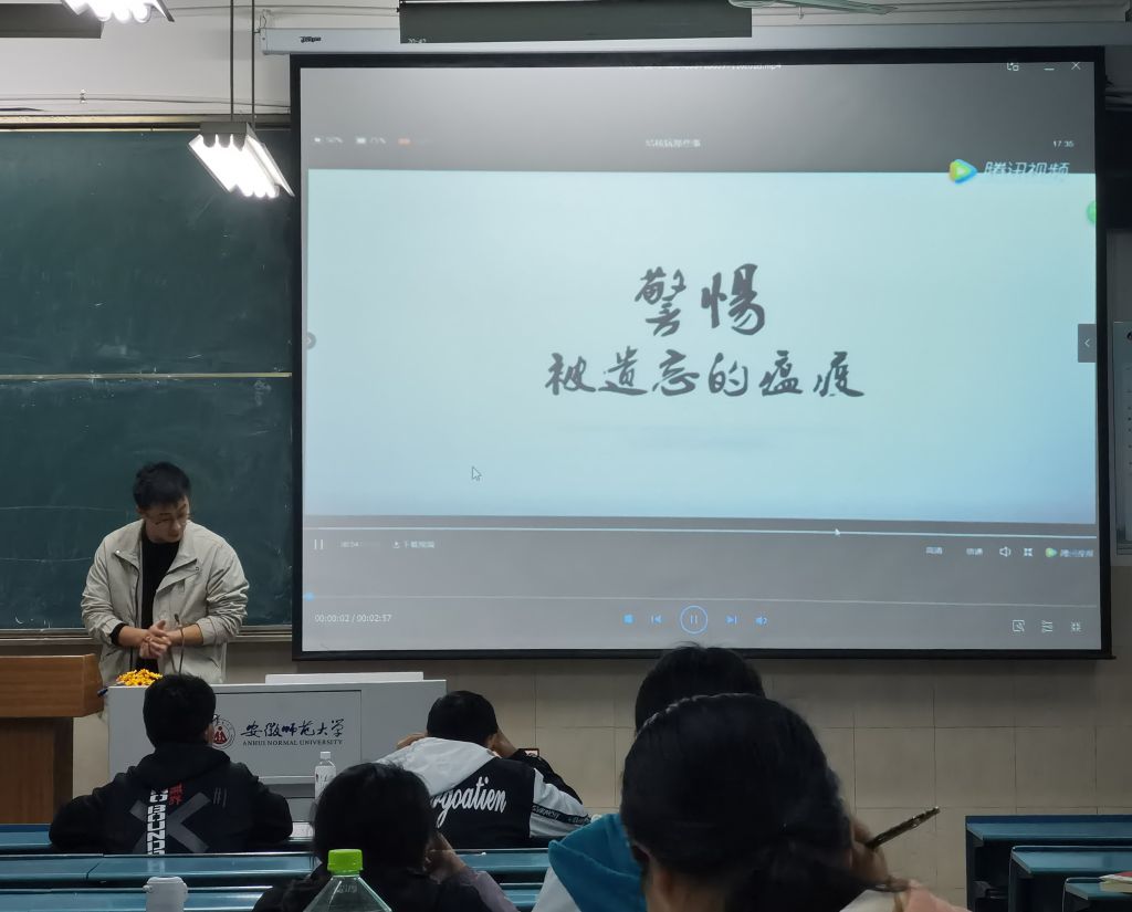 3月24日是世界防治结核病日,班会开始韩东杰先向同学们简单地介绍了防结核病日的重要意义以及结核病的概念。为了让同学们进一步了解肺结核,韩东杰为大家播放了肺结核疾病科普视频,通过视频同学们了解到肺结核是一种由结核分枝杆菌感染引起的呼吸系统传染病,在我国古代便有"肺痨"这一说,它的易感人群主要包括HIV感染者、糖尿病患者、老年人等免疫力低下的人群。为早预防肺结核疾病,建议每年定期进行结核病检查。看完视频后,韩东杰进行补充性的科普讲解,同学们逐渐对防结核病有了更深入的认知,对保持身体健康的意识也进一步加强。