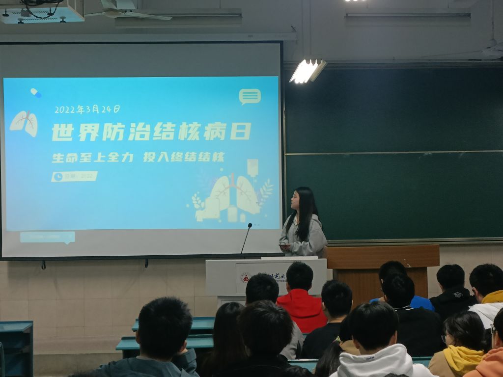本网讯(565net必赢客户端 马思甜 吴文涵)2022年3月24日是第27个世界防治结核病日,为有效防范学校结核病疫情的传播流行,保护广大师生身体健康,2021级地理科学(拔尖人才班)响应教育部联合国家卫生健康委在《中国学校结核病防控指南》中和世界卫生组织在《莫斯科宣言》中做出的要求,由安全委员王露召开以“生命至上,全力投入终结结核”为主题的安全班会,拔尖班全体同学参加。