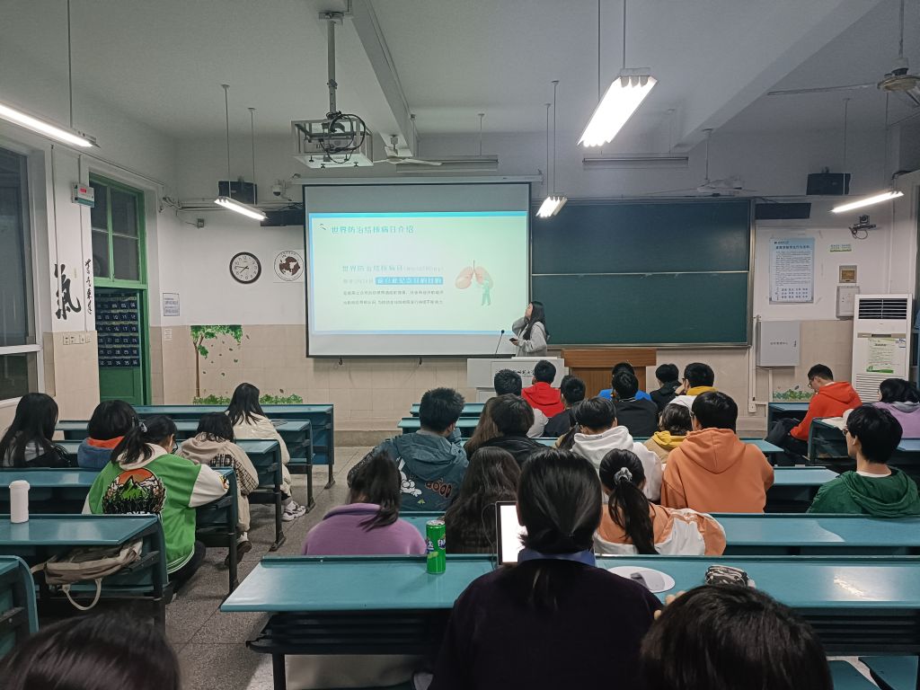 认识结核,了解世界防治结核病日。班会伊始,王露播放一段结核病的宣传片,短片中介绍了结核病的历史、种类以及传播方式,着重讲述了肺结核对人类的危害和简要的防控办法。紧接着,王露介绍1993年4月23日世界卫生组织在伦敦召开46届世界卫生大会上通过的“全球结核病紧急状态宣言”,自1996年2月28日,每年的3月24日为世界防治结核病日。王露指出,在新冠肺炎大流行使终结结核病进展面临困境的当下,学校在防控新冠疫情的同时,也应该重视对结核病的防治,积极响应世界卫生组织加大结核病防疫投资的要求,以保障每位师生的安全健康覆盖。
